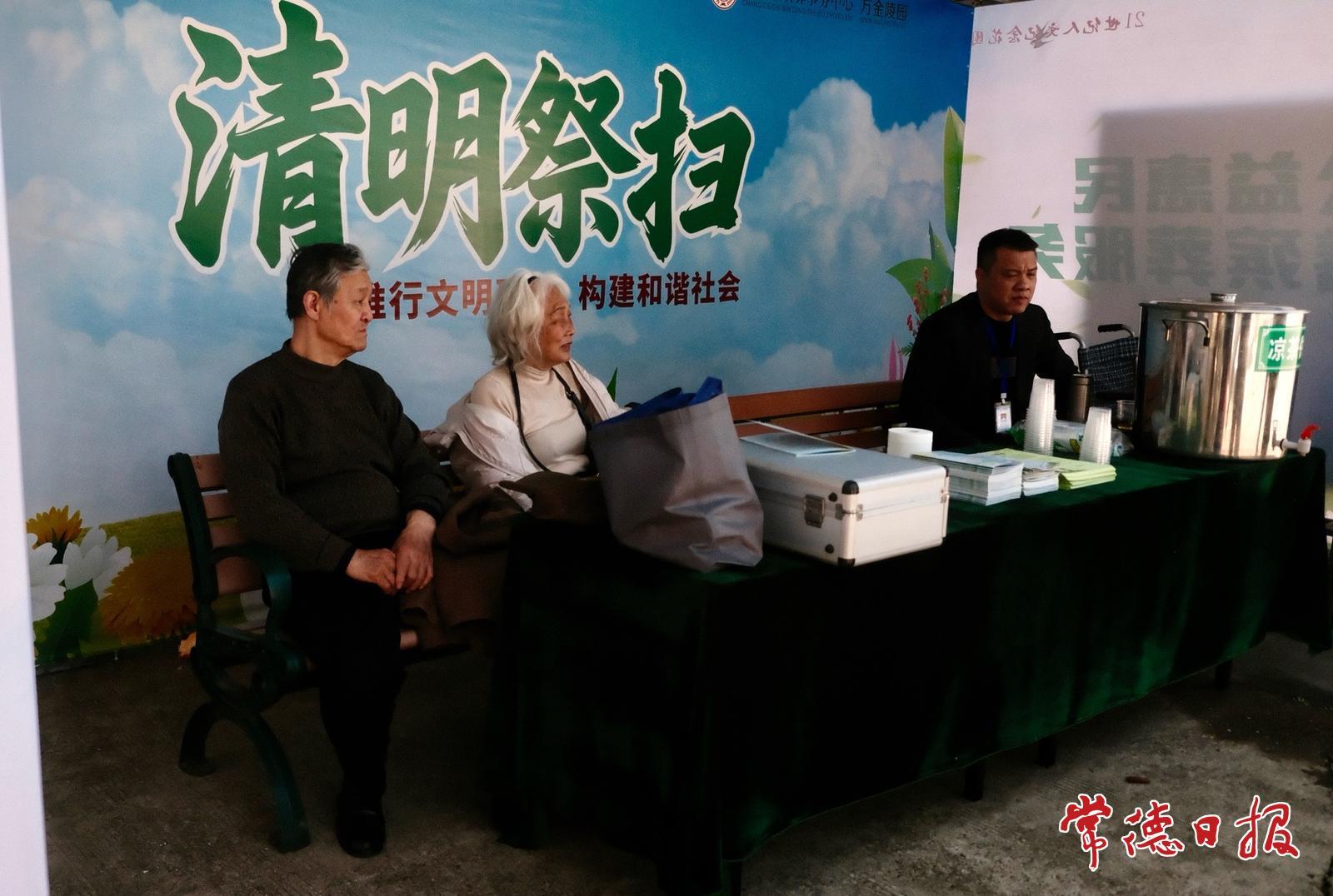 记者在万金陵园公交站点看到,现场已安排工作人员值守,引导群众有序乘车,同时为老弱病残等特殊候车群体提供座椅、轮椅、茶水等便民服务。