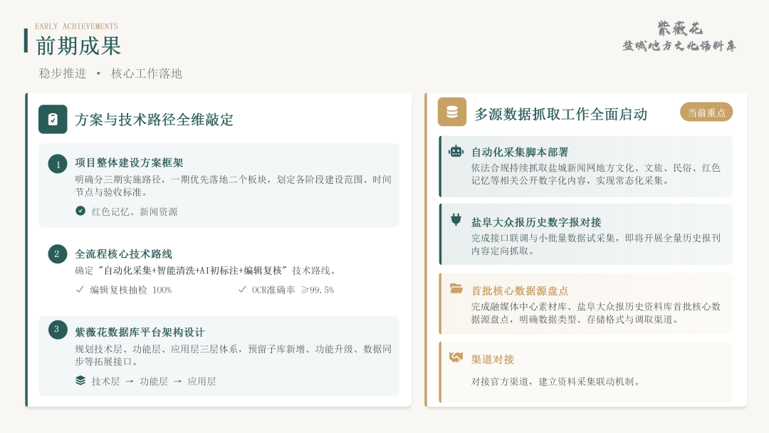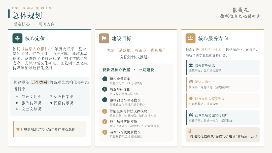 盐阜报主推的“紫薇花文化语料库”已经启动,依托盐阜大众报83年历史报库及盐城新闻网、影像盐城等资源,正稳步推进文化数字资源系统整合,为城市数字文化底座打牢基础。严汉平仔细了解文化语料库建设情况,认真听取语料收集、数据清洗、标签标注等各项操作环节。