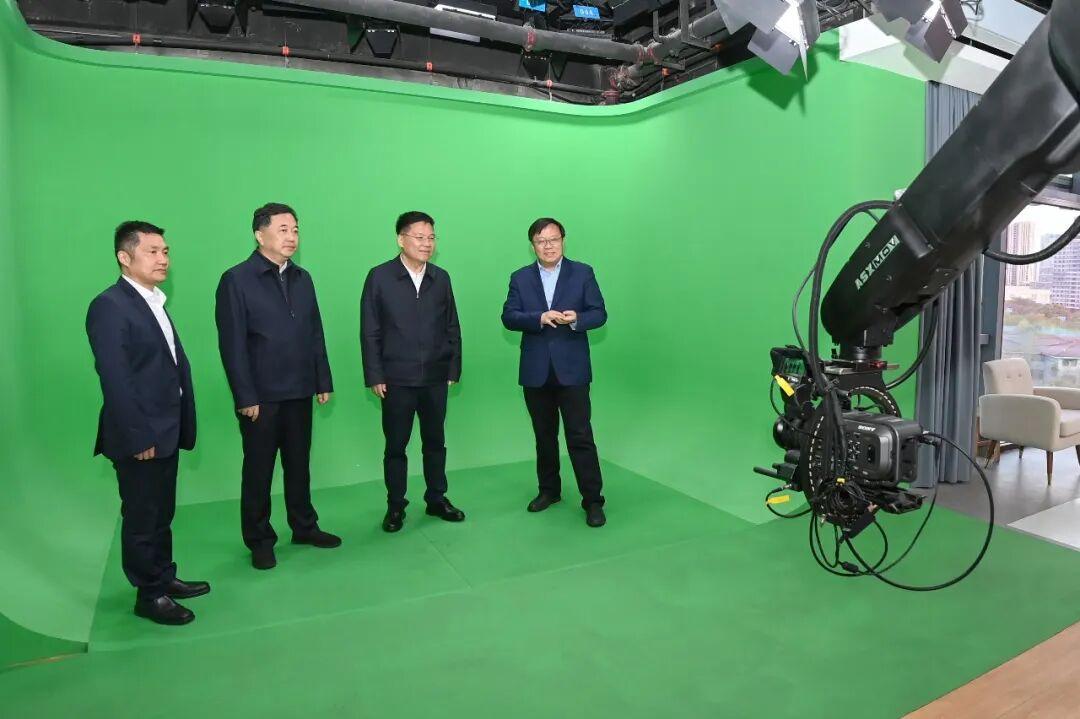 步入七楼MR多模态演播厅,严汉平兴致勃勃地体验虚拟现实结合的多场景3D切换,得知自动追踪的摄影多轴机器人全省仅有三台,全省报业系统中仅盐阜报一家拥有时,严汉平对盐阜报主动拥抱新技术的做法“点赞”。