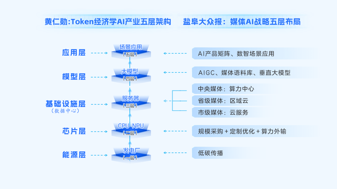 明确一个规划——“基于AI产业五层架构上的AI战略五层布局”;