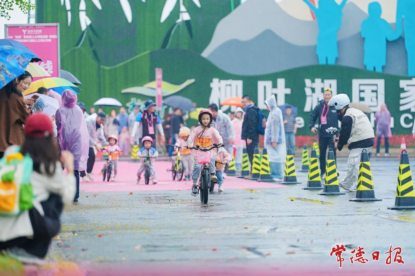 常德日报记者 杨力菲 文/图 4月11日,益丰大药房2026“她铁”粉色铁人三项挑战赛·常德站暨常德市柳叶湖铁人三项公开赛小铁人骑跑两项体验组和青少年组热血开赛,来自全国各地的100名“小朋友”(4岁至15岁)齐聚柳叶湖,挑战“她铁”赛事。(部分图片由赛事组委会提供)