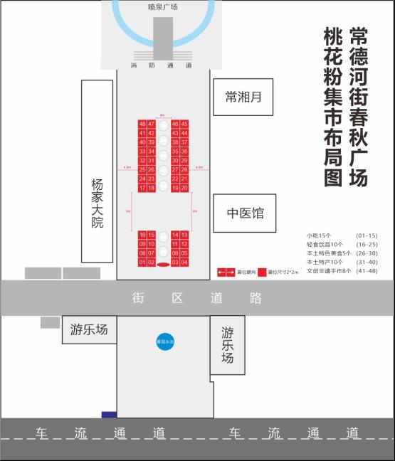 常德河街不仅承载着常德人的城市记忆,更是常德文旅消费的核心聚集地。本次桃花粉集市选址的春秋广场,是常德河街的核心人流枢纽,坐拥街区成熟的商业配套与稳定客流,每逢节假日便成为市民游客的打卡首选地,春节、国庆、五一等重大节点单日客流最高突破18万人次,自带超强的流量吸附力。街区交通便利、配套完善,具备成熟的运营管理体系,无需商户额外承担基础配套投入,是小成本创业、品牌拓店、本土好物出圈的绝佳平台。