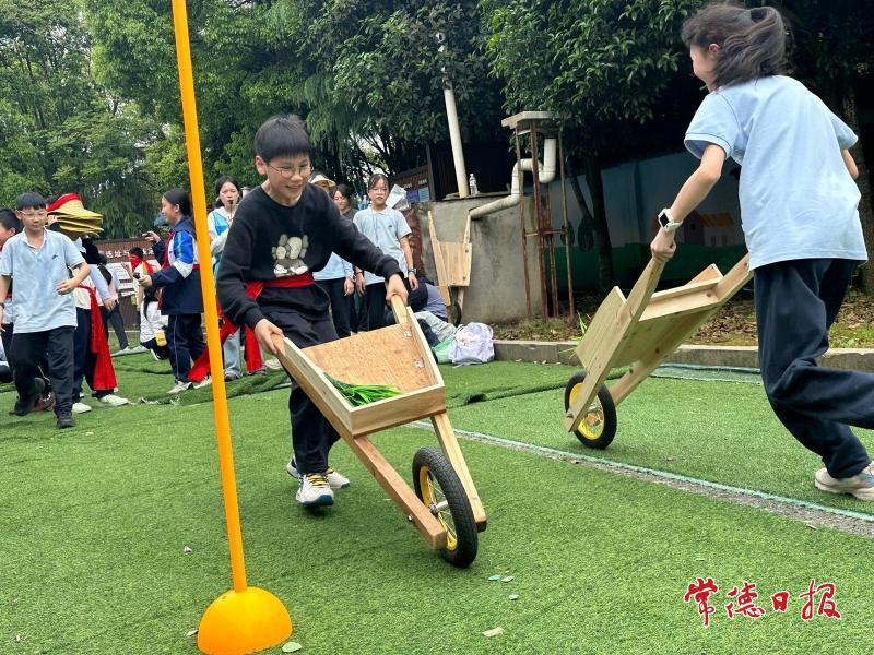 在乡村振兴学校,现代农业知识化作可触可感的实践:操控无人机模拟田间巡视与施肥,拼装机器人完成“大丰收”编程挑战。学生们的惊叹声此起彼伏:“现在这么厉害的吗!科技改变生活呀!”红色基因的传承同样融入汗水——推起独轮车,运送“粮袋”支援“前线”,在体力挑战中体悟淮海战役的支前精神。