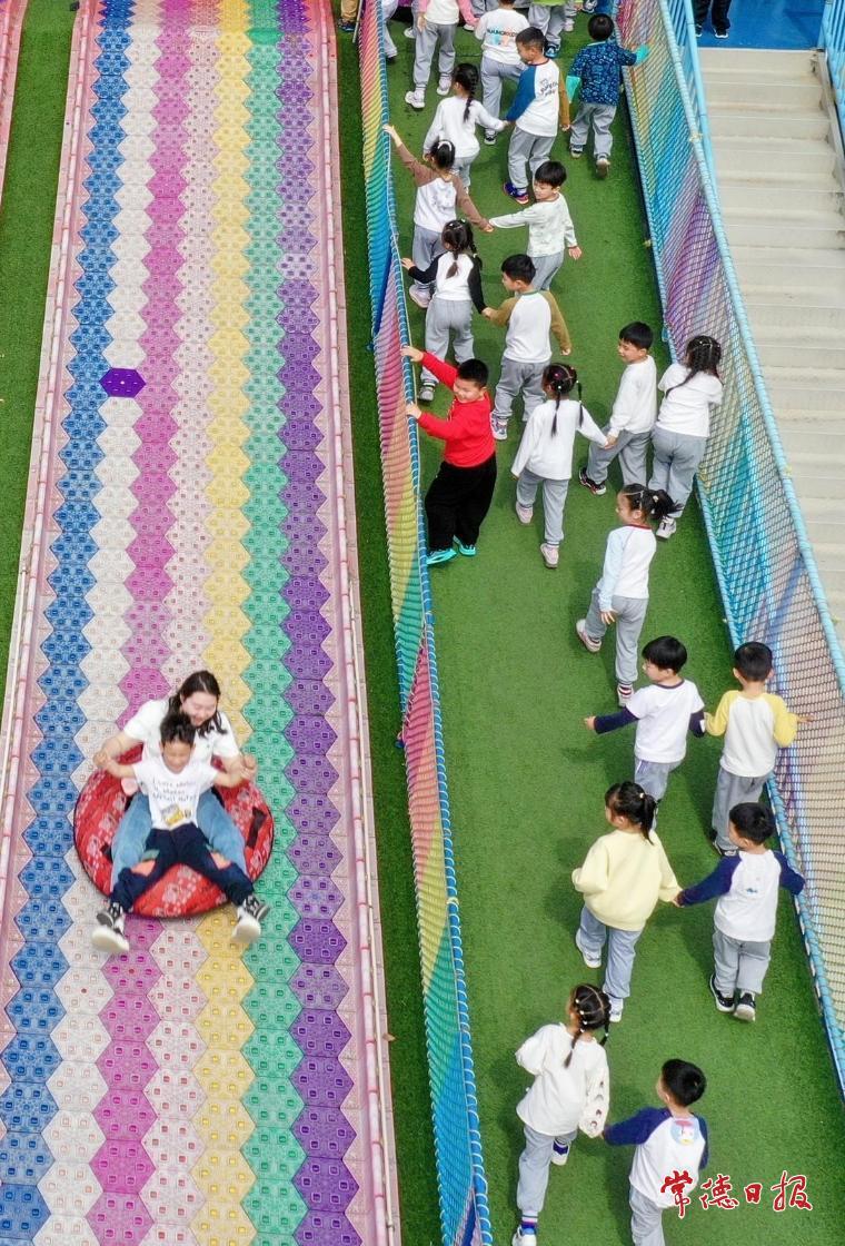 4月17日,柳叶湖旅游度假区内,孩子们在嗨啦谷亲子乐园开展春游活动。当日天气晴朗、空气清新,数百名孩子在老师的带领下体验彩虹滑道、沙池乐园、趣味转盘等无动力游乐项目,在欢声笑语中亲近自然、释放天性。近年来,柳叶湖旅游度假区持续深化文旅融合,通过打造嗨啦谷亲子乐园等多元化文旅项目,丰富亲子研学、休闲度假等产品供给,不断提升游客体验,让城市文旅发展更具温度与活力。常德日报记者 刘颂 摄