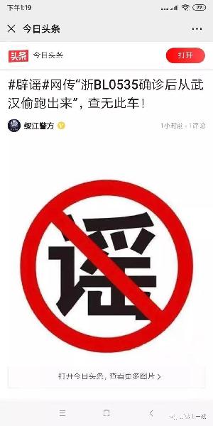 辟谣侠盟|车牌号浙B0535刚刚从武汉回蓝山系谣言!