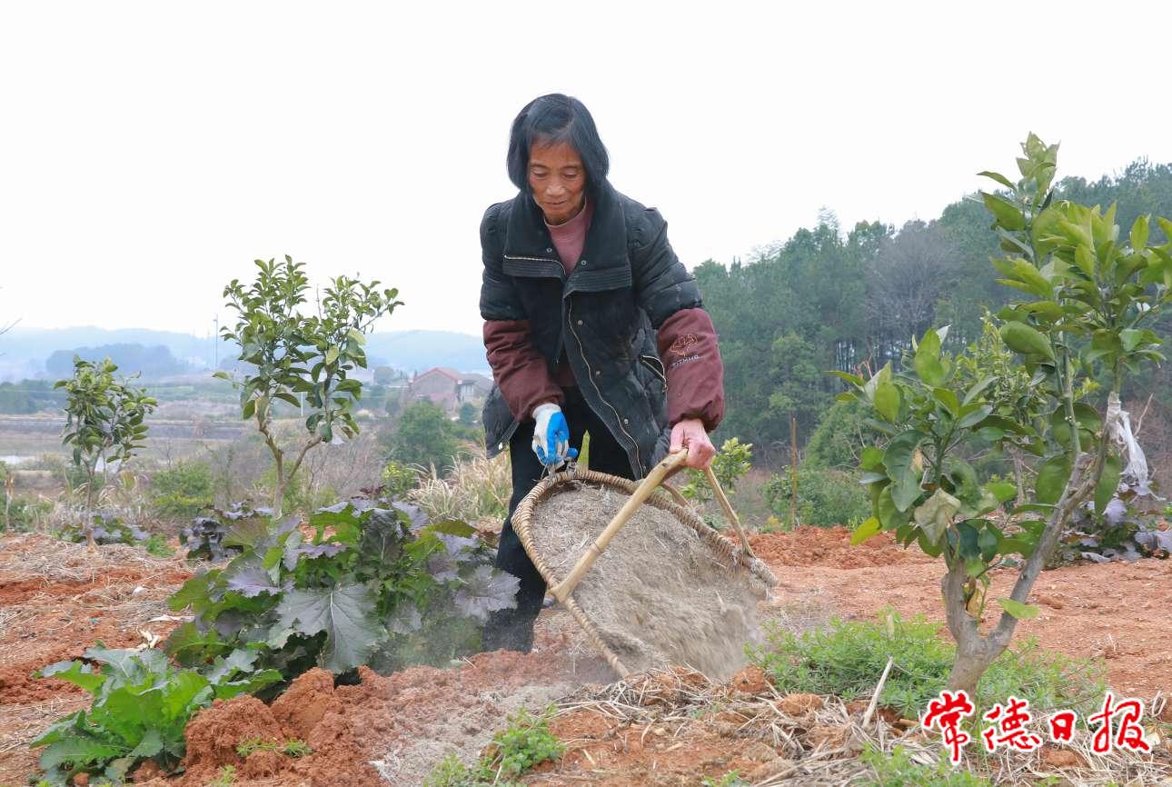 常德日报记者 杨荣国/文 王明睿/图 2月27日上午,石门县夹山镇杨坪社区陶家岗屋场前的一块小山坡上,几位村民正忙着给新栽培的橘树培育新肥。“大家抓紧时间施肥,现在天气好,正是橘树生长的关键时刻!”其中一位年龄稍大的中年男子不断地叮嘱众人。