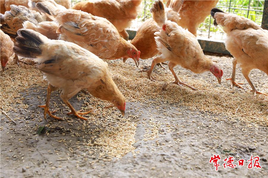 “它们肚子饿了,要进食了,你们稍等一下!”采访时,地下室的鸡仔们突然“咯咯”地大声吵了起来,罗华赶紧起身,从旁边的晒谷场上,装了满满一桶粮食,快速朝着养鸡场走去……