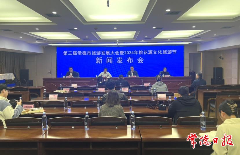 常德日报记者 李紫莹 通讯员 黄亮 文/图 3月22日,第三届常德市旅游发展大会暨2024年桃花源文化旅游节新闻发布会在市文化馆举行。会上公布,节会将于3月28日在桃花源旅游管理区正式开幕,广邀多方游客在最美的时节走进桃花源,深度体验桃花源里韵味独特的诗酒田园、舒放惬意的美好生活。