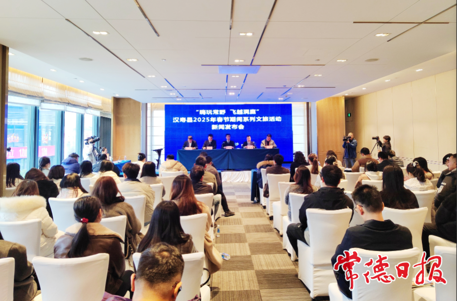 常德日报记者 黎自来 通讯员 邱实 1月18日,汉寿县人民政府在长沙举行“嗨玩常野 飞越洞庭”汉寿县2025年春节期间系列文旅活动新闻发布会,邀请全国各地宾朋走进中国长寿之乡、全国生态旅游百强县、全省旅游强县,共赴文旅盛会、共享文旅盛宴、共度欢乐祥和中国年。