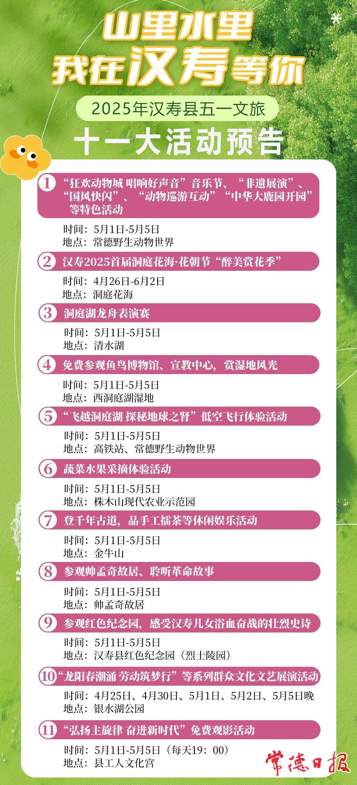 【附“五一”汉寿文旅系列活动时间、节目详单。可点击下载收藏哦!】